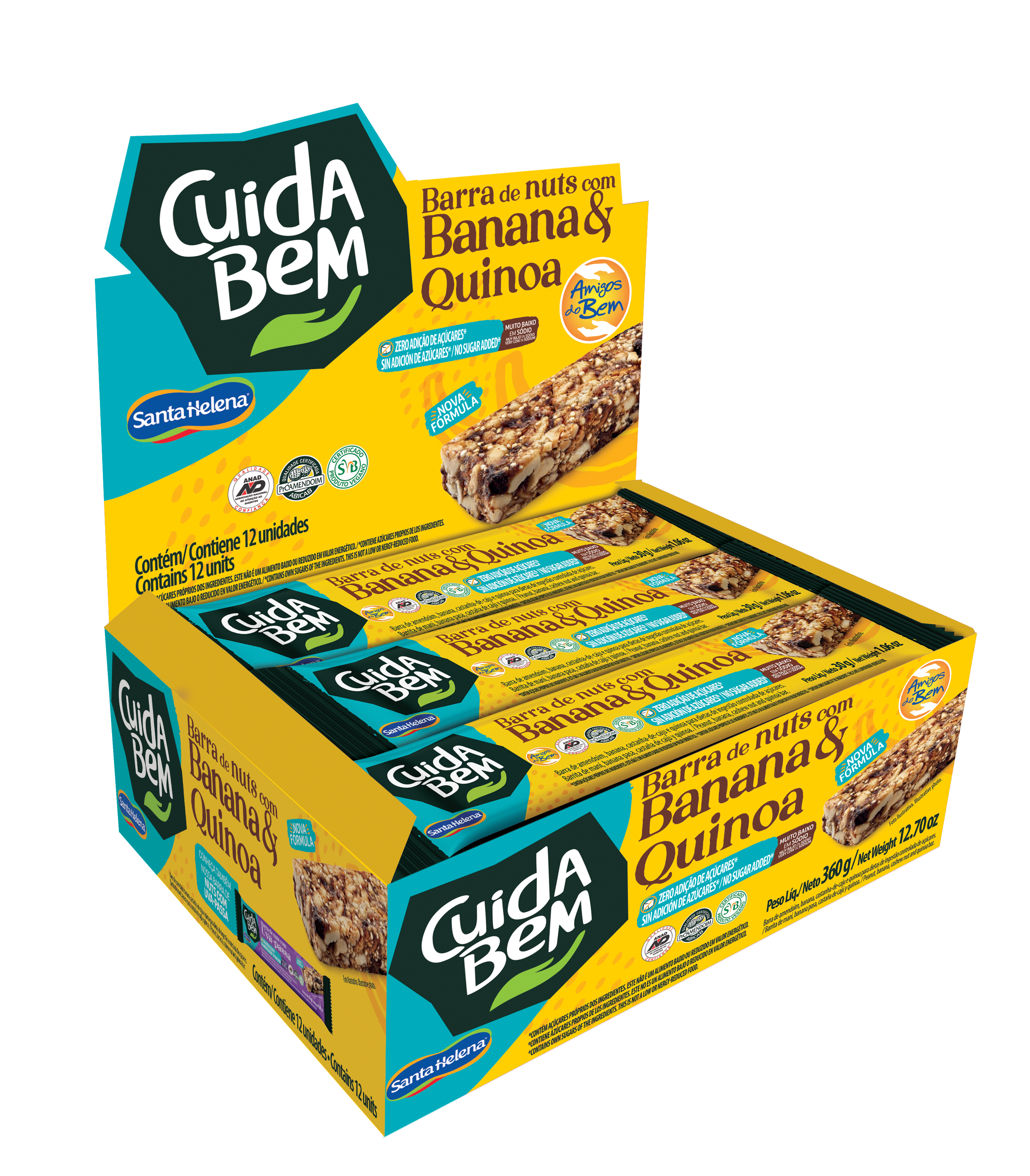 Barra De Nuts Com Banana E Quinoa Zero Açúcar Cuida Bem Caixa De 360g